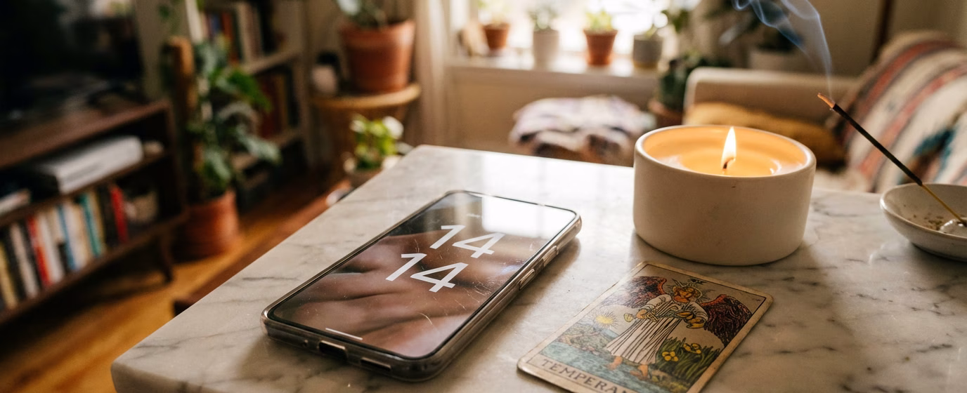 Vous regardez votre téléphone et il affiche 14h14. Une fois, deux fois, puis encore. Ce moment particulier attire votre regard sans raison apparente. Pourtant, rien n’arrive par hasard. L’heure miroir 14h14 porte un message fort, celui d’un univers qui cherche à vous guider. Entre numérologie, guidance angélique et symbolisme du tarot, je vous propose de décrypter ensemble toute la richesse de ce signe céleste.