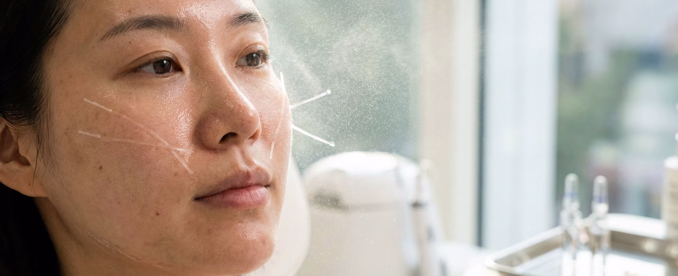 Le lifting coréen agit selon deux mécanismes complémentaires selon la version choisie. Dans les deux cas, l’objectif est de stimuler la production de collagène et d’apporter des actifs régénérants au cœur des tissus cutanés, sans aucune agression de la peau.